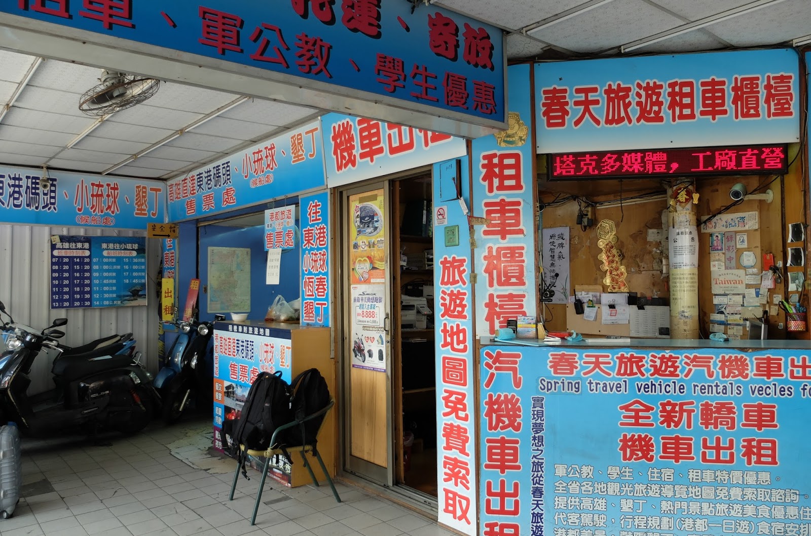 一下船就可以看到很多民宿或是合作的機車行拿著牌子在等你嚕!!