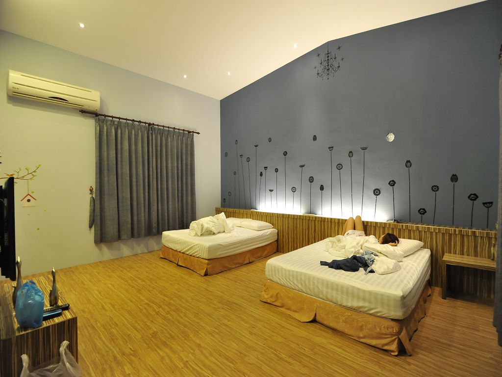 阿雄&小高再加1位友人,共3人1房(這房型可住2~6人吧),因為房型挺寬敞的,加個床鋪即可唷!! 但衛浴只有一間。(這家宿民很彈性,可以選擇以房間計價或人頭計價,建議電話確定,櫃台都挺NICE的~)