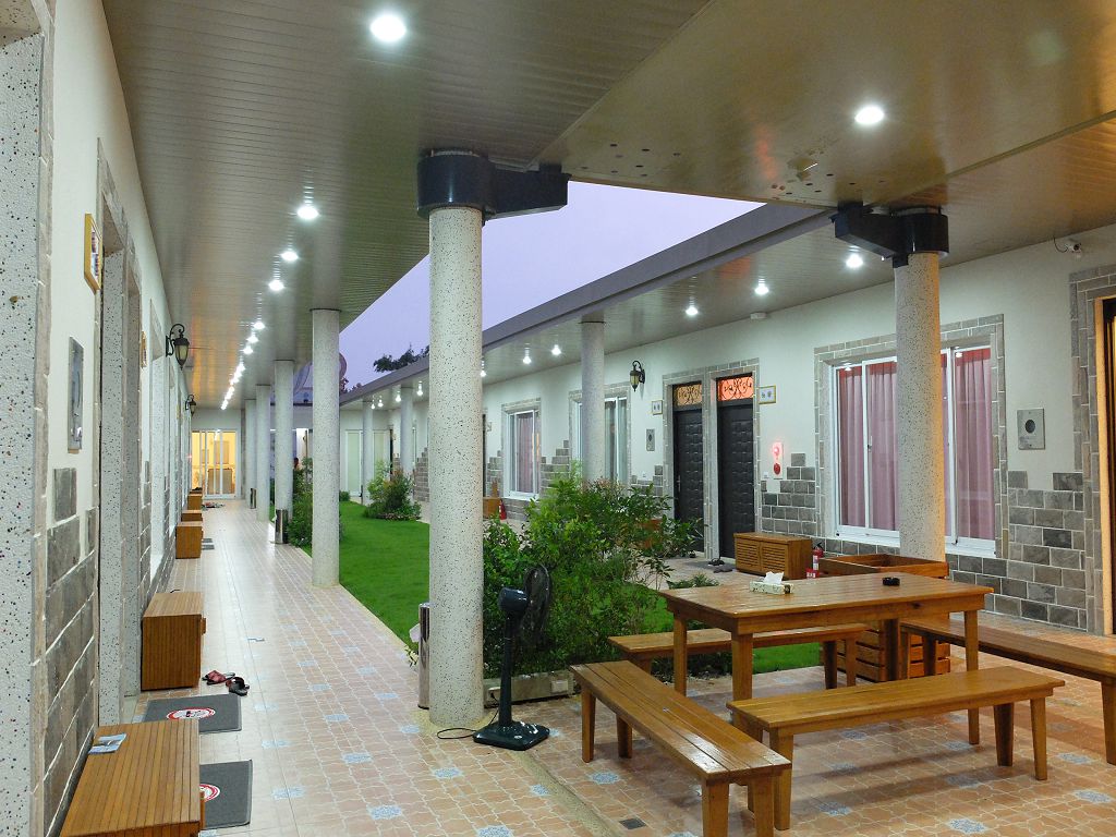 太陽下山後的民宿依然燈火通明,因為長廊中間是露天花圃,一開門就有微風徐徐呢~