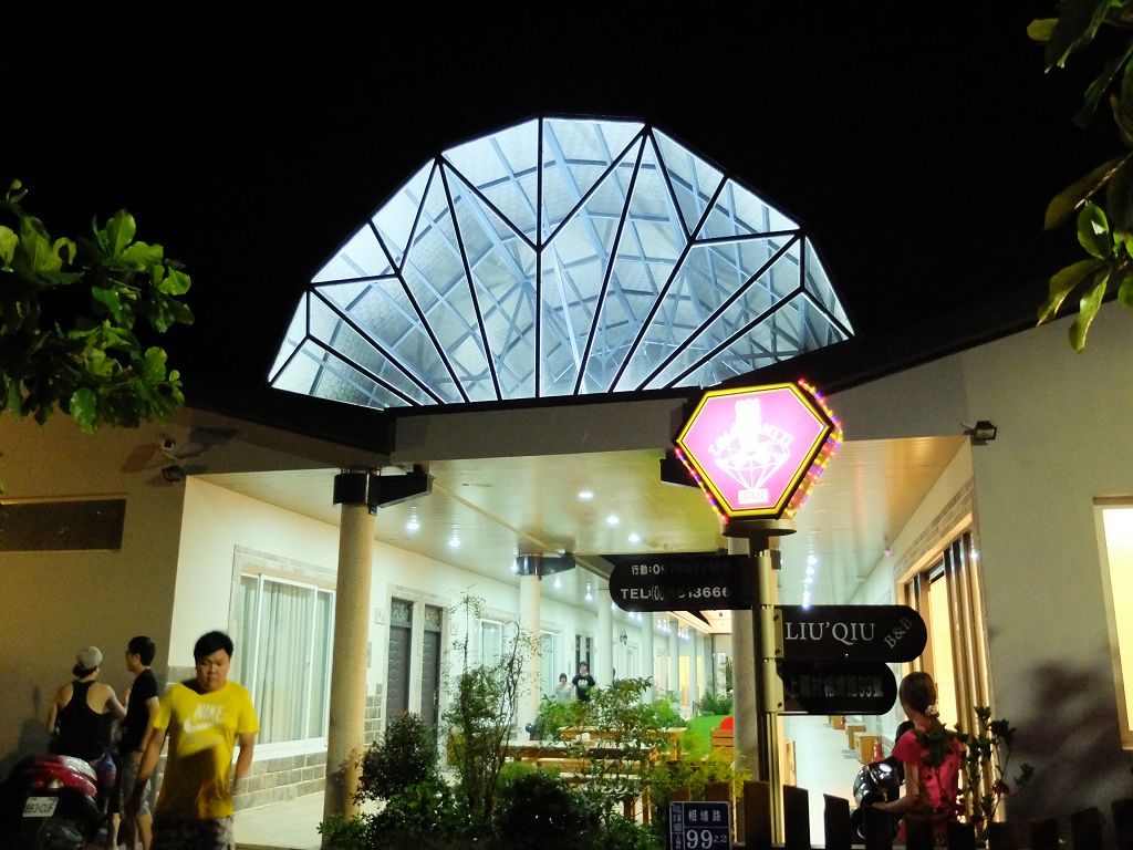 夜裡的民宿頗有巧思,白天時都沒發現屋簷原來是顆美麗的大白鑽。