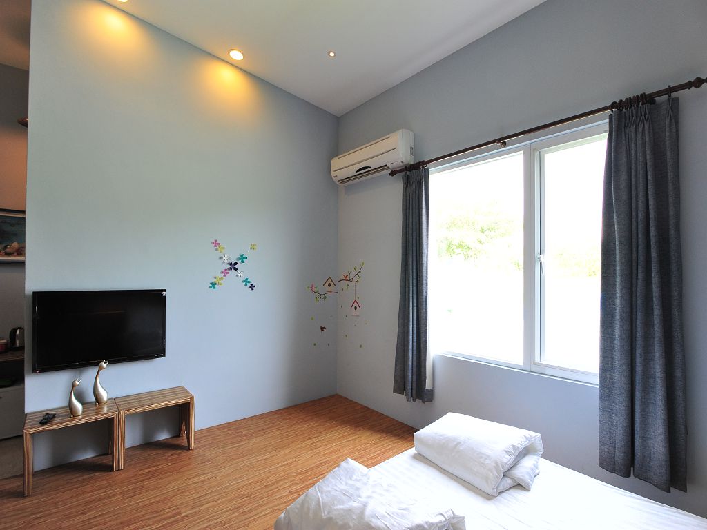 刷白的牆面及全新的液晶電視、冷氣及擺設....